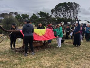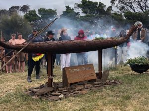 Raising the flag off the canoe Emma Lee sharing Timme’s story