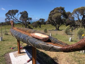 With guidance from ceramic artist Carol Buissink, experienced in large-scale outdoor sculptures, the team chose Corten steel for the canoe’s structure. Its form was inspired by drawings from early French expeditioners who met with local people. Carol also created a ceramic fire bowl to sit within the canoe, symbolising the old people’s tradition of carrying fire and providing a space for ceremony.
